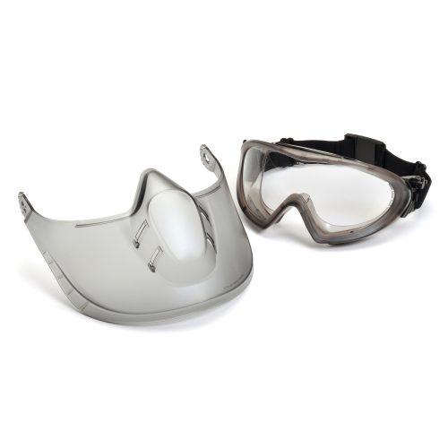 • Goggles incorporated with a removable shield provide full-face protection.
