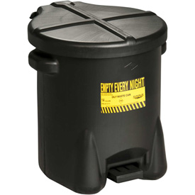 Eagle Poly Oily Waste Cans are constructed of high density polyethylene (HDPE) and offer fire safe temporary storage of solvent rags, waste rags, shavings and other materials subject to spontaneous combustion. Will not rust or dent, are resistant to most chemical compounds, have no seam for a leak proof construction, and feature self-closing lid with foot lever and with a flared base for added stability. FM Approved. 100 percent designed and manufactured in the USA. Compliance: OSHA 29 CFR 1910.125(e)(4)(ii) and OSHA 29 CFR 1910.125(e)(4)(iii)