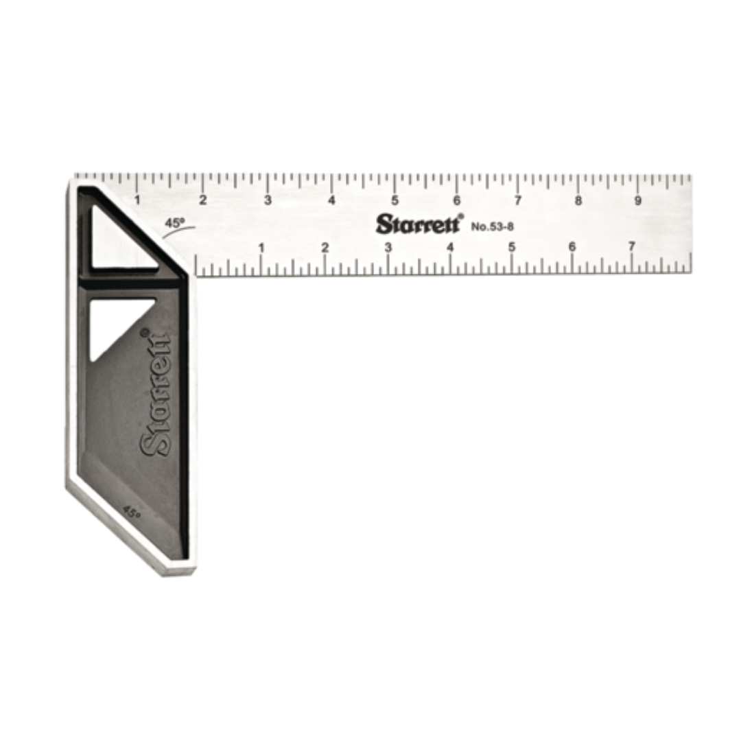 carpenter Try Square has an 8″ stainless steel blade and features graduations etched on each side of the blade. With a 2″ cast aluminum handle.