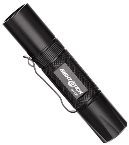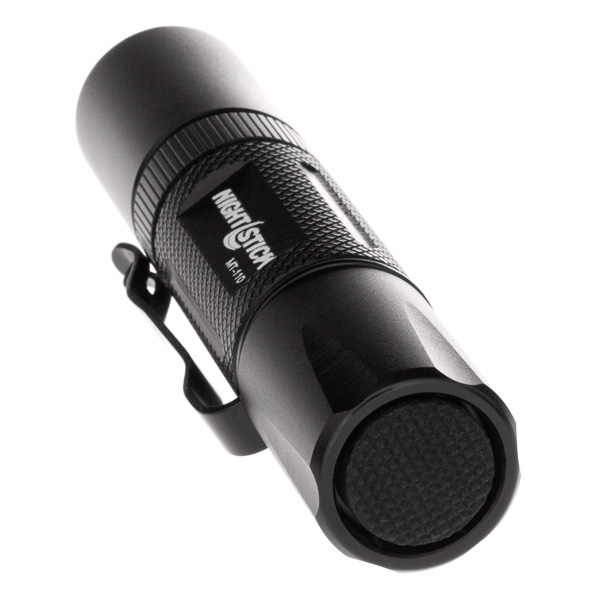 This non-rechargeable Mini-TAC light uses a CREE® LED and has a deep parabolic reflector, creating a tight, long throw beam for distance illumination. It has a water-resistant design and is constructed from aircraft-grade 6061-T6 aluminum with a Type II hard anodized finish. The tail switch provides momentary or constant-on functionality. The light comes with a removable pocket clip. The MT-100 is powered by two included AAA batteries.